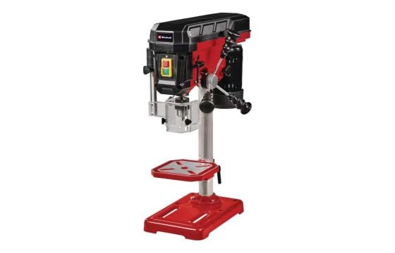 The Einhell TC-BD 500 pillar drill is a precision tool for special demands: A pillar drill enables holes to be drilled in workpieces made of wood or metal with pin-point accuracy. An output of 500 W and 9 speed settings to suit all materials form the basis for precision drilling jobs. For fast and exact results there is an adjustable depth stop. The maximum drilling depth is 50 mm. This pillar drill features a robust ring gear chuck that can take the most common drill bit sizes. The drill spindle with ball bearings results in long-lasting and easy use. For variability this pillar drill comes with an infinitely height-adjustable drill table . It is also possible to rotate and tilt the drill table. A welcome feature for applying pressure exactly is the rubberized, three-arm capstan. For safety during use there is a folding chip guard, and the On/Off switch with zero-voltage release function prevents the machine from starting up again unintentionally after a power failure.