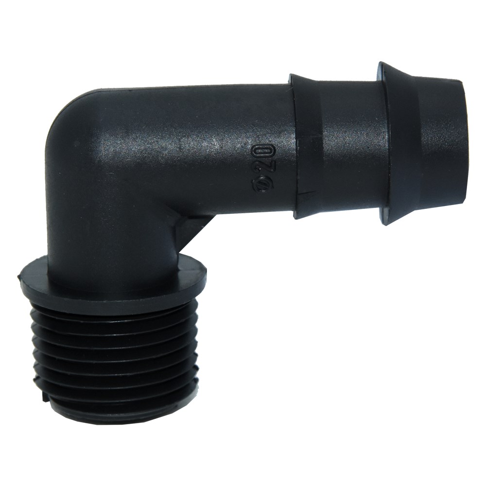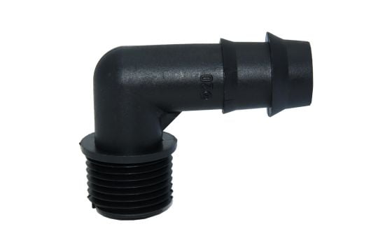 Elbow with faucet of PE 20x1/2" male with angle 90°. Used to installations angular water supply infrastructure lines, in irrigation and agricul, etc. This elbow enables network branching 90° angle. This elbow connect LDPE pipe Ø 20 with other fittings by fillet, for joining the fillet recommend tu use teflon whiles pipe connect whith elbow in mechanically. Manufactured with European standards, resistant to corrosive materials designed to withstand pressure up to 6 Bar.