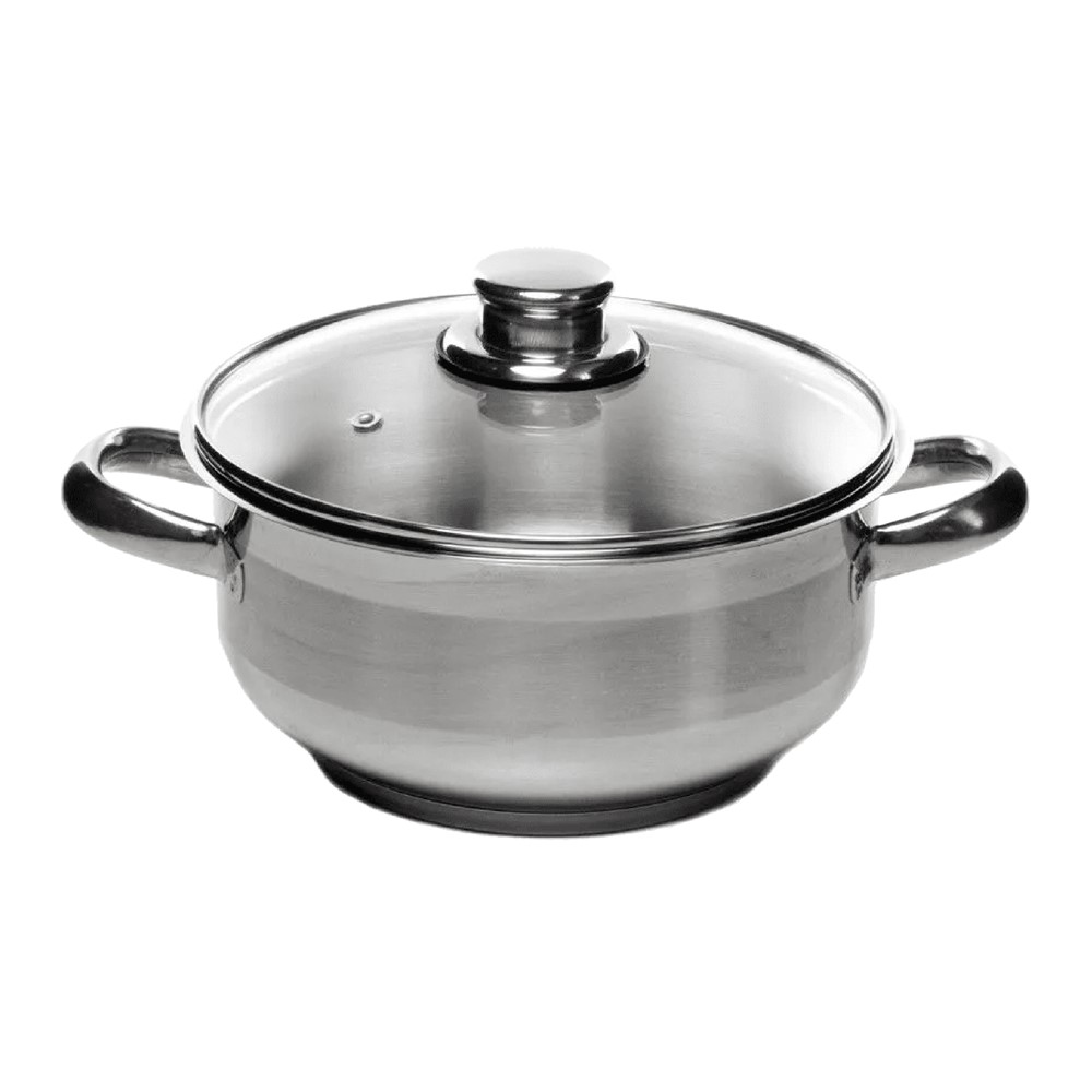 Induction bottom stainless steel cooker with glass lid, suitable for all types of plates. The pot has its glass lid for a safe and easy cooking. Thanks to the 2 stainless steel holders, transportation and cooking is very simple. Very good production quality at a competitive price.