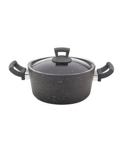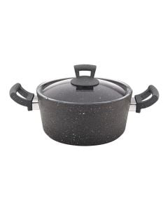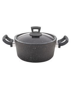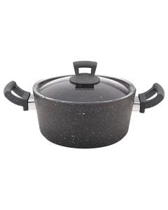 Granite induction cooktop and tempered glass material lid included. Very good and light aluminum material coated with non-stick coating ensures quality, durability and practicality of the pot. Thanks to the heat-resistant handles, you can easily cook on all types of hobs. It is recommended to use accessories that do not damage the material of the Germanitium coating, such as: wooden spoons, silicone, etc. Size 28 x H. 19 cm