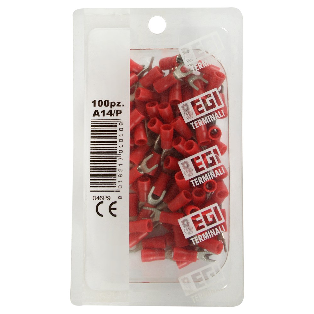 Insulated Fork Terminals 0.25-1.5mm² / 4mm, 100pc/pack