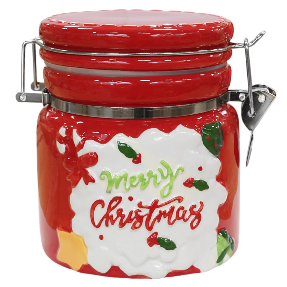 You're reviewing:Jar with decorative Christmas lid, ceramics, white/red, Dia.11.3x12.5 cm