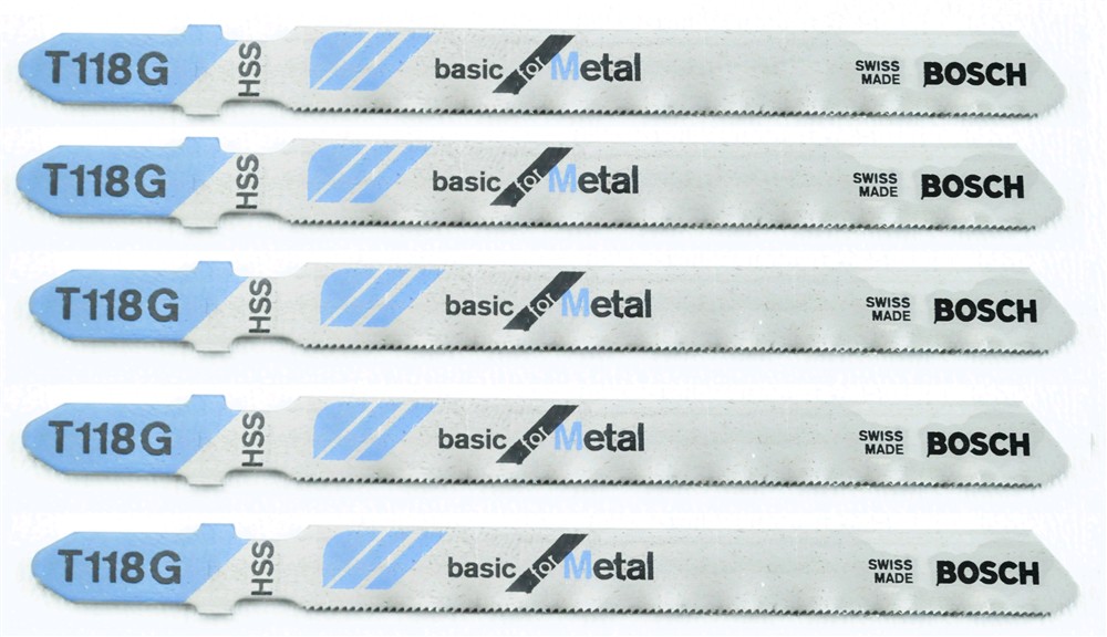 Jig saw blade for metal 92mm T118G Jigsaw Blades are the ideal for metal. They make clean,straight and fine cuts.They are suitable for metal fro 0.5-1.5mm. They come in a pack of 5.