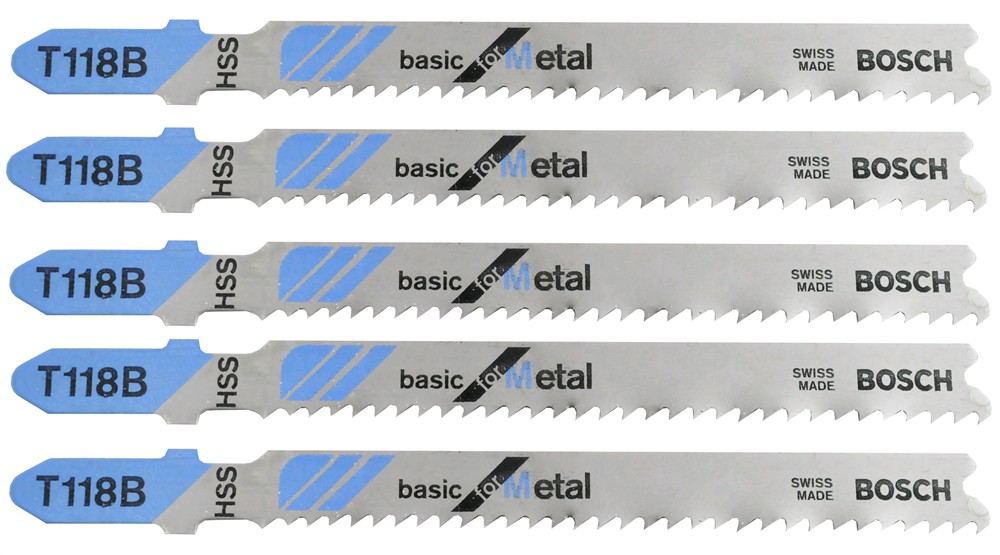 Jig saw blade for metal 92mm T 118 B HSS HSS, Jigsaw Blades are the ideal for metal and aluminium. They make clean,straight and fine cuts.They are suitable for metal fro 2.5-6mm. They come in a pack of 5.