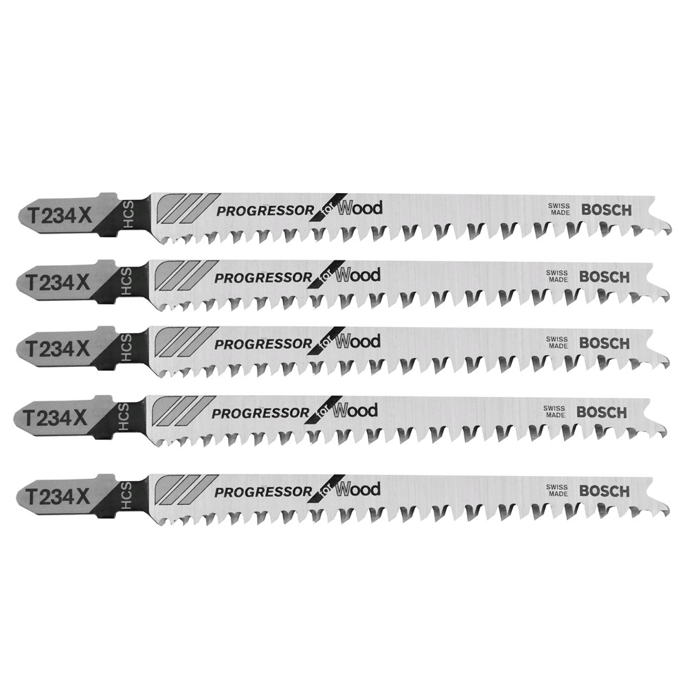 The Bosch T234X Jigsaw Blades are the ideal for Wood.They make clean,straight and fine cuts.They are suitable for softwood, chipboard, wood core plywood, fibre boards (3-65 mm).They come in a pack of 5.