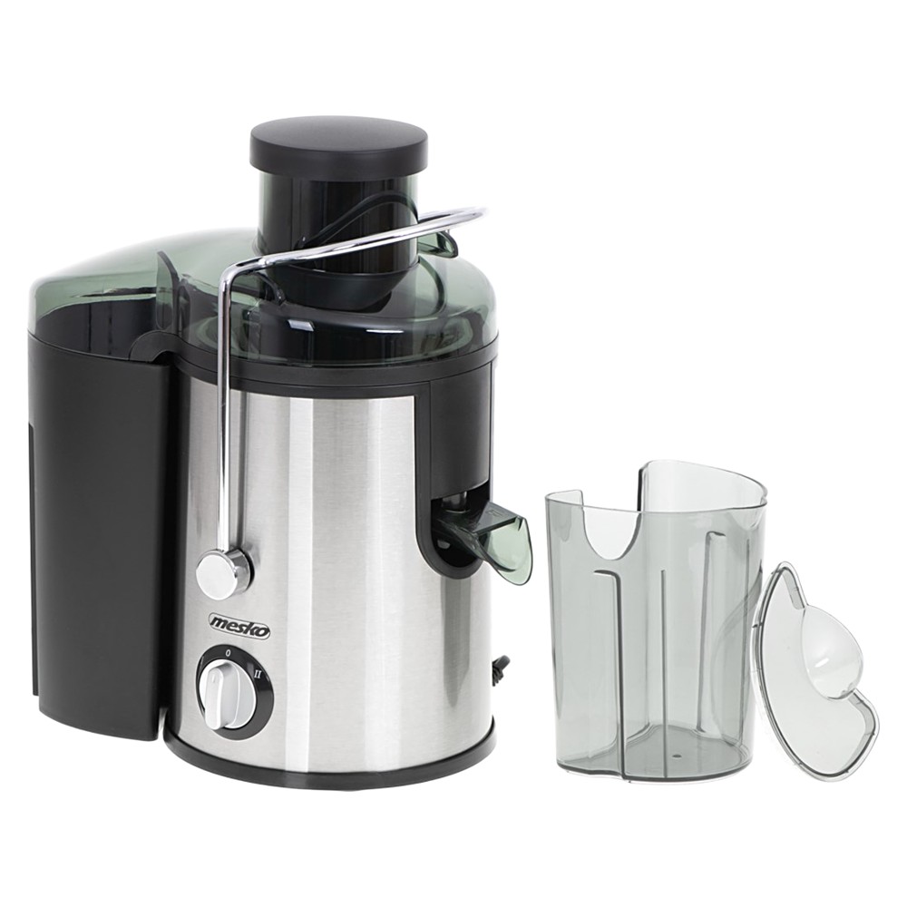 Functional and compact size 600W juicer allows to prepare juice from both fruits and vegetables supporting a healthy diet. The juice is filtered through a sieve with small meshes which keeps the solid parts of the fruit/vegetable away from the juice. The sieve is made of stainless steel. Therefore to the juice tank goes only juice which contains a huge amount of vitamins. Pulp, stones, seeds and other remains are separated from juice and go to another 1,5L tank. Due to a safety lock it is impossible to turn the device on when it is assembled in an improper way. The juice tank with a capacity of 0.45L is equipped with a lid to prevent uncontrolled splashing of the juice. Juice extractor MS 4126 allows very quick preparation of juice from fruits and vegetables with a diameter up to 65mm, the larger should be cut before inserting into the feeder. For greater convenience, the elements of the juicer can be washed in a dishwasher.