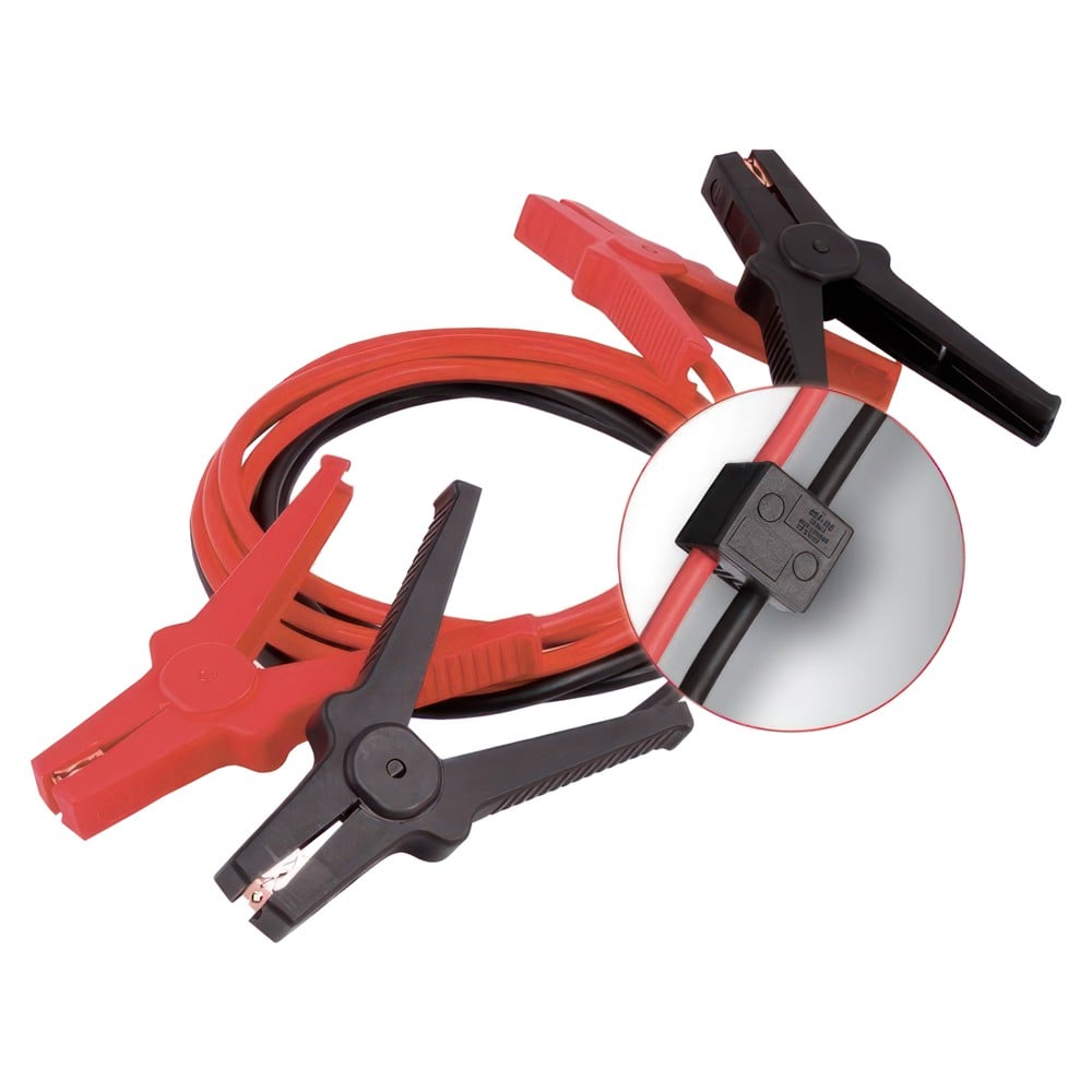 Packed in carrying bag. Conductivity for copper cable 16 mm². Overvoltage protection. Flexible for ease of use. Manufactured according to the DIN-72553 standard. Resistant to oil, petrol and acids. Fully insulated clamps & cables.