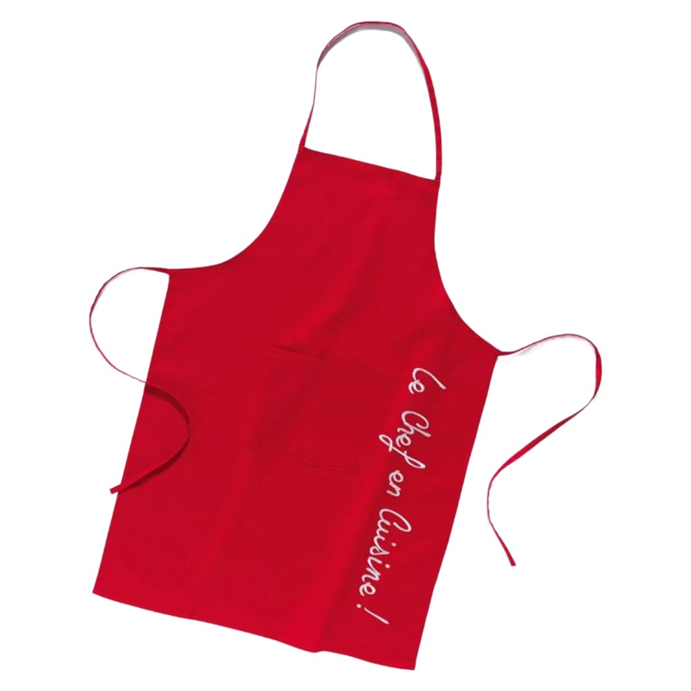Kitchen apron with pocket Cuistot size 60 x 84 cm. The apron is made of 100% cotton material. Comes in red design, where it can be combined with other accessories of the same line (not included).