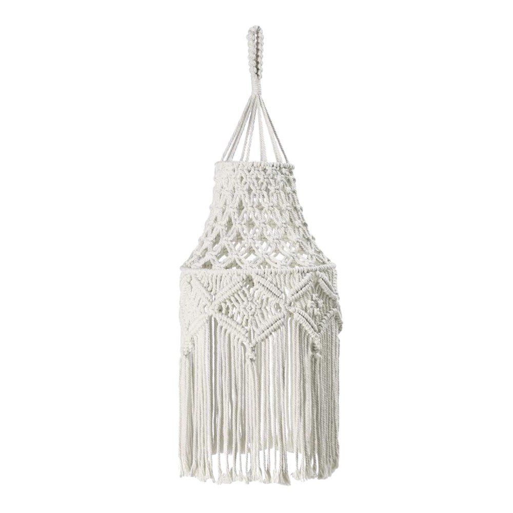 Knitted hanging light, E27, D30 cm, H80 cm, white, cotton/steel. This beautiful macrame lampshade is made with natural cotton rope and a unique design.Bring a bohemian atmosphere to your room and beautify your room.Can block bright glare, avoid eye pain for children and the elderly, but also adjust the problems of the indoor lamp source.A Bohemian style of light decorations in your home, during the quiet night to bring you warm light.This macrame lampshade does not contain a bulb, you can install the bulb inside yourself to create decorative comfortable lighting, create natural, soft and warm atmosphere for your room.
