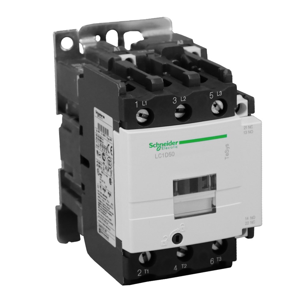 Contactors are electric switches used to lock and unlock different equipment from network.This is a contactor usable in alternative voltage (AC). His coil is 220V(but can be changed depending on the various specifics of the system).It has 3 poles with maximal power 33 kW and amperage 50A.