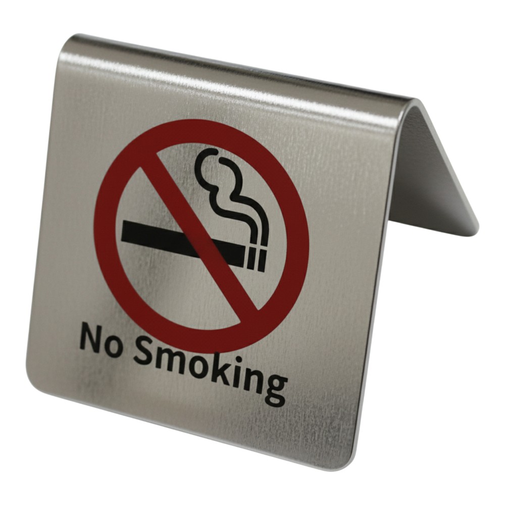 This “No Smoking” sign made of stainless steel, with a silver finish and dimensions of 5x5 cm, is ideal for professional settings such as restaurants, hotels, and offices. Its durable stainless steel construction and simple, minimalist design provide elegance, long-lasting use, and clear indication of the smoking prohibition.