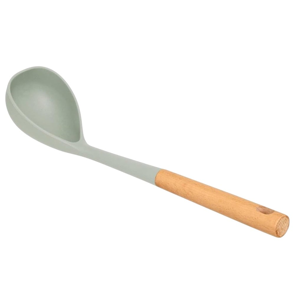 This is a slotted spoon made from a combination of wood, plastic, and silicone, in gray and beige, offering a modern and functional design. Measuring 8x7x34 cm, it is ideal for serving and mixing hot dishes or salads. The durable materials make it safe for kitchen use and easy to clean.