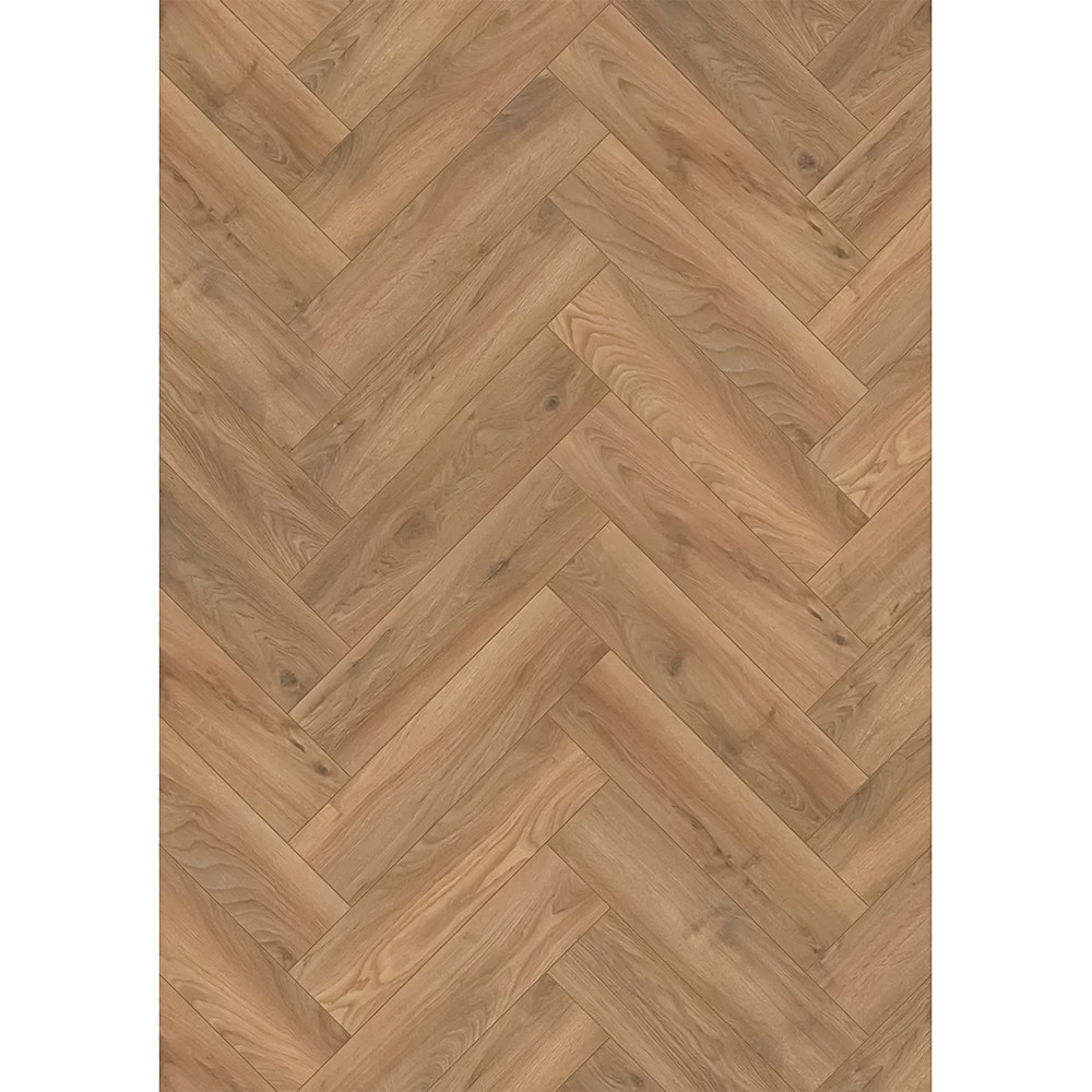 Herringbone laminate is suitable for both modern and traditional environments, offering a range of different design options. The various decors that range from trendy to classic are easy to clean and maintain and are sure to bring you years of enjoyment. With a 20-year warranty and an antibacterial comfort that prevents the growth of bacteria on your floor and offers you the peace of mind that comes from a healthy environment at home. The size of a panel 630 x 126 x 8 mm, class 32/AC5, and the fold down assembly system.