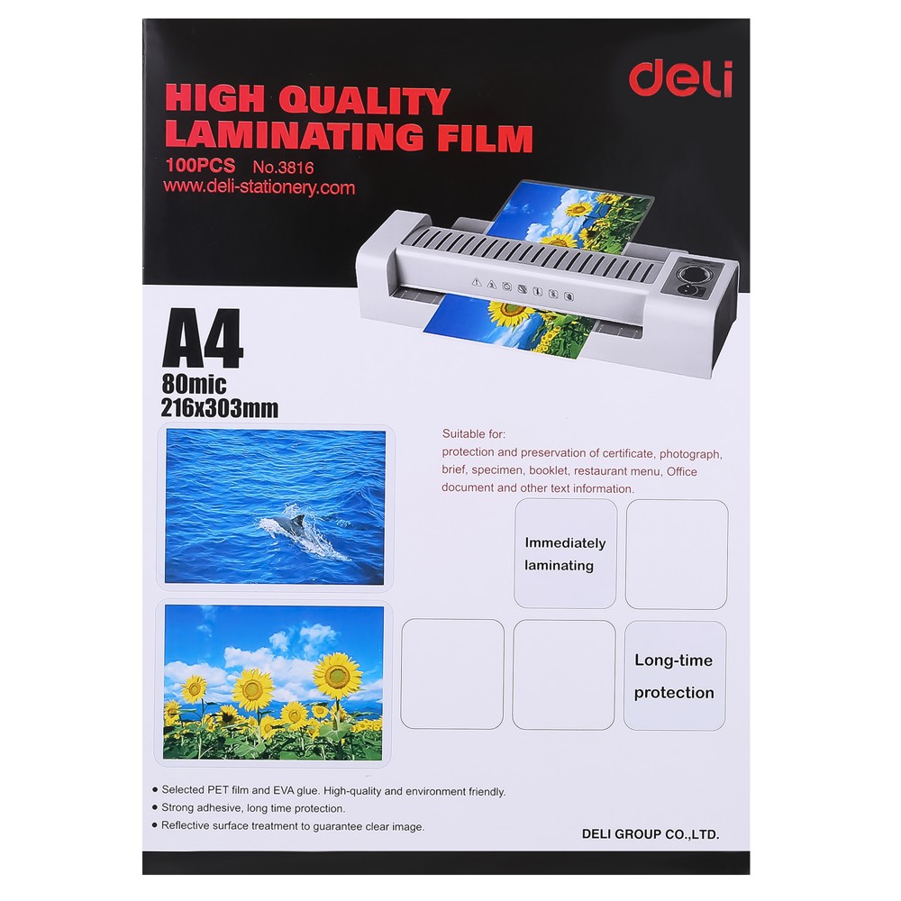 Laminating envelopes, Deli, A4, 80 mic, 216x303 mm, 100 pieces, 1 pack