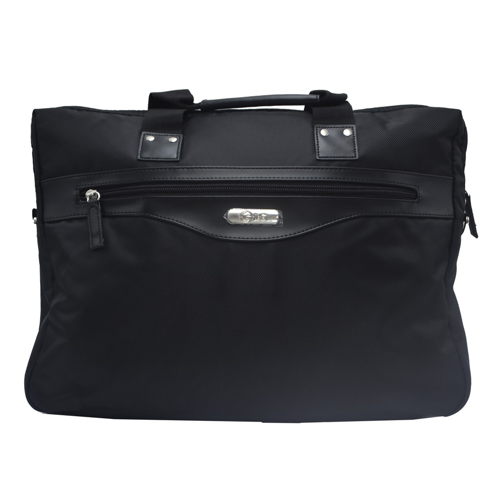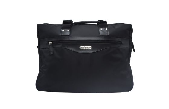 Laptop bag, made of polyester material, in black color. The bag is equipped with a large zippered pocket and a small outer pocket, as well as a carrying handle, which makes it easy to carry. It is used for placing the laptop, as well as notebooks, books and various accessories. This product is suitable for daily use.