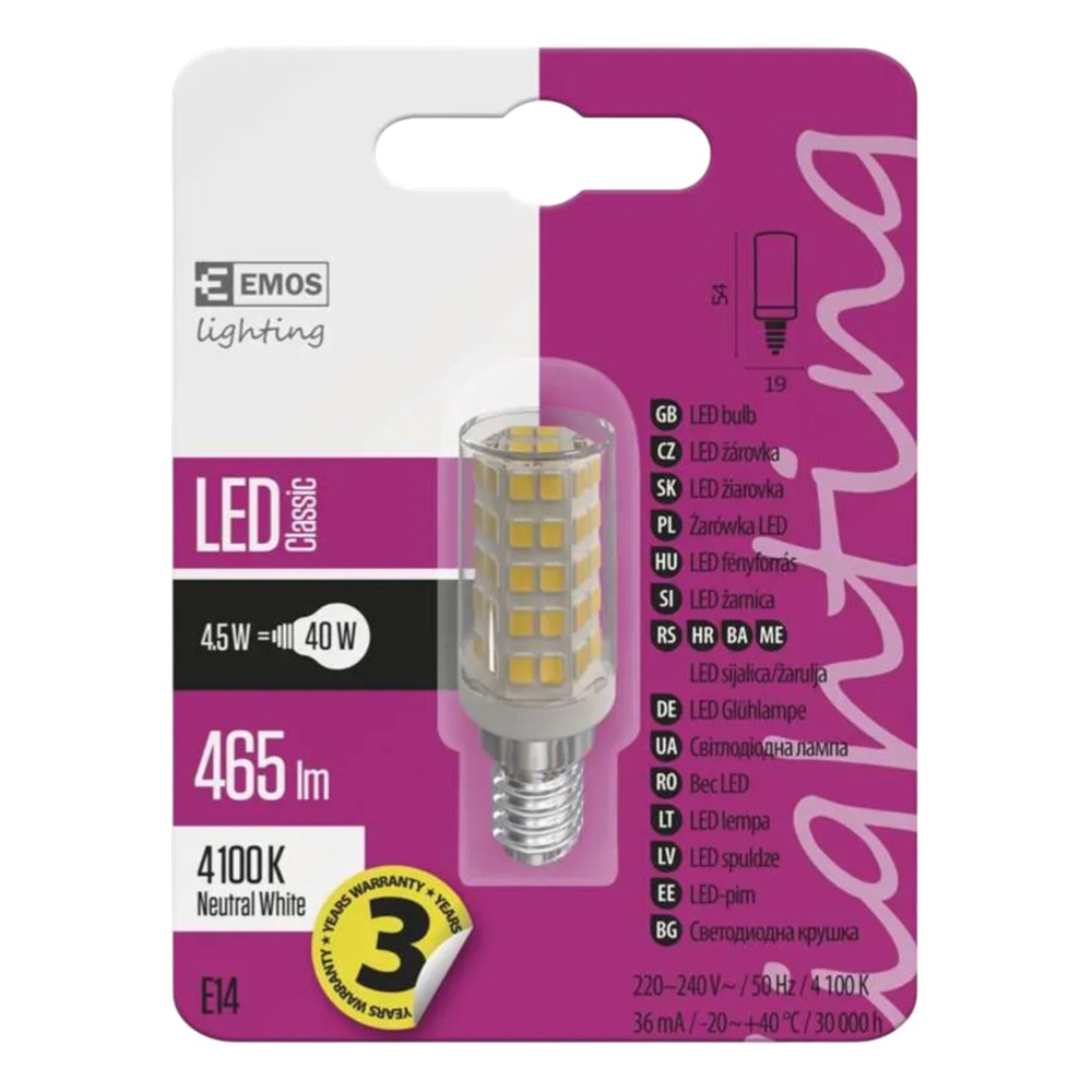 LED bulb E14 (4.5W ≈ 40W, 465lm, 4000K) is an efficient and economical solution for indoor lighting. With a consumption of only 4.5W, it replaces traditional 40W bulbs, offering energy savings. It provides 465 lumens of light with 4000K natural light, suitable for home, office or decorative lighting. It offers long life and stable performance.