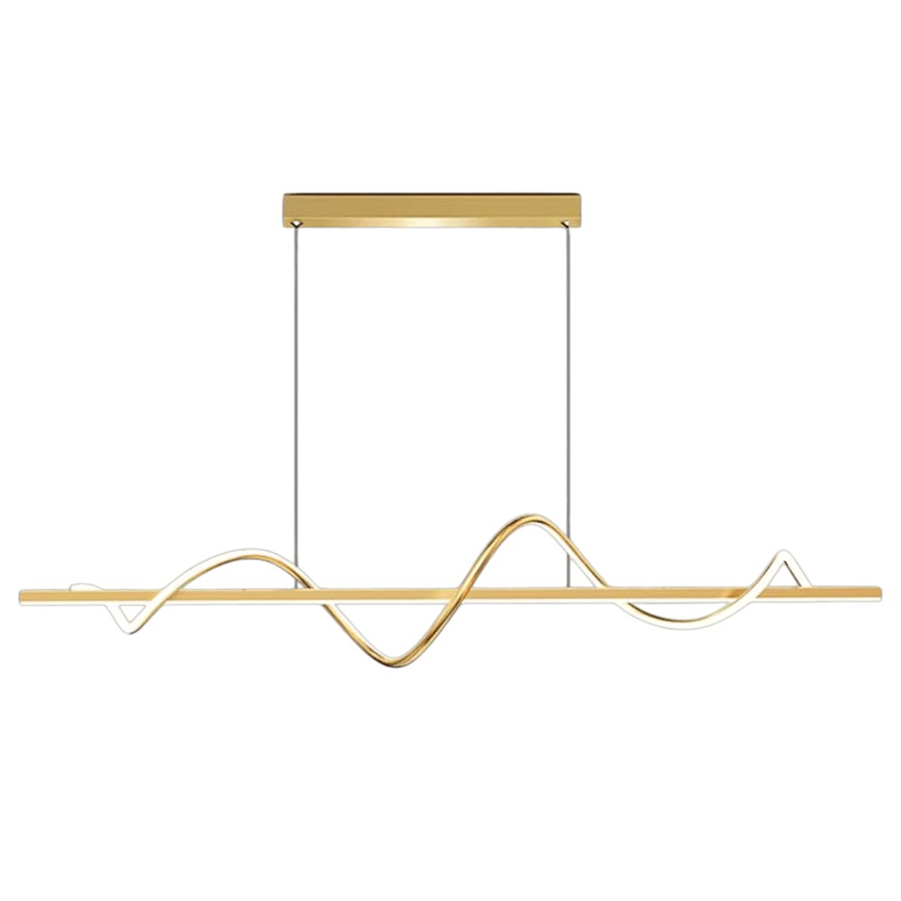 60W LED pendant light with adjustable light 3000–6400K and 5100 lm brightness. Elegant linear design, length 120 cm, made of gold-colored aluminum. Ideal for modern environments such as dining tables, offices or living rooms.
