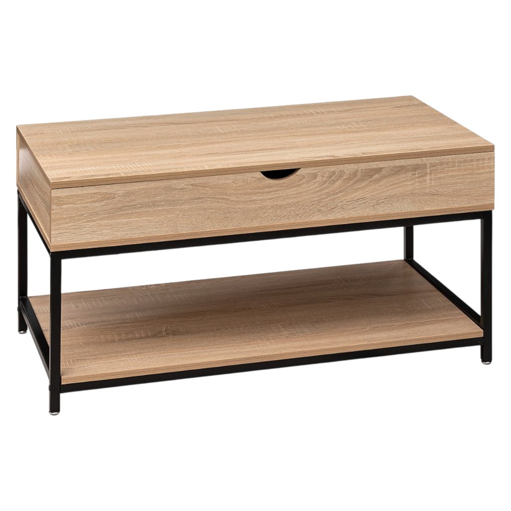 Elegant and functional coffee table made from MDF and steel in a natural color. The table’s movable surface allows you to adjust the space according to your needs, making it suitable for storage or serving. Measuring 95x50x51 cm, this table will complement any living area by bringing a modern and practical style.