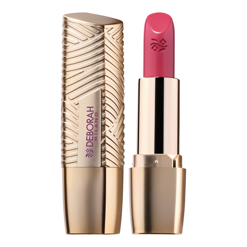 Deborah Milano Lipstick. Among the ingredients of the new formula, vitamin-rich amber and gold oil extract to keep lips nourished is combined with Hyaluronic Acid. The formula consists of active ingredients that regenerate and give exceptional comfort to the lips while protecting them from any annoying dryness and external agents. The texture, rich and melting, adheres perfectly to the lips, giving a defined and homogeneous color from the first pass. Delicately scented with acacia flowers.