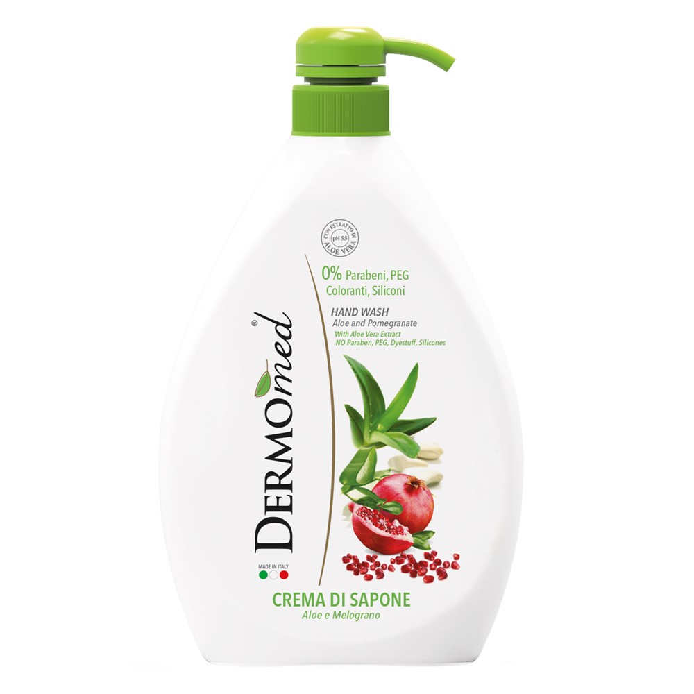 Liquid soap, enriched with aloe vera and pomegranate extracts, which nourish and hydrate the skin, regenerating and softening it. This product has a delicate floral and fruity scent and is suitable for all skin types, especially for sensitive skin.