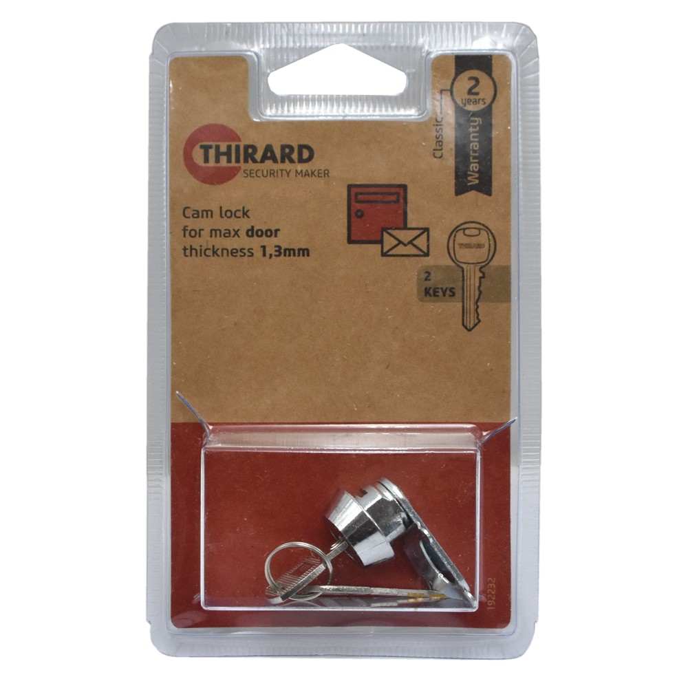 "Moulded alloy body. Disc tumblers mechanism. Bended cam adjusted at 12 o'clock. 2 nickel plated keys. Nut and fixing click"