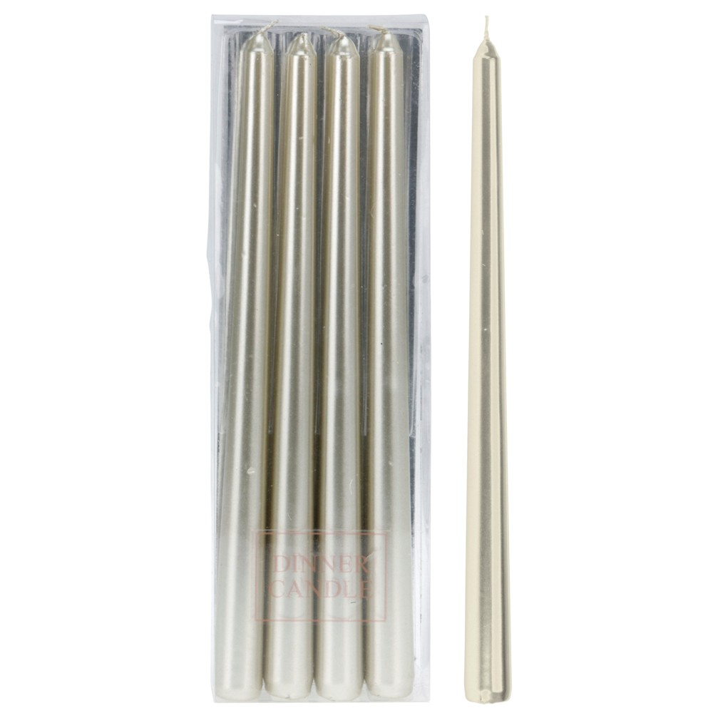 Long decorative candle set (PK 4), paraffin, silver, 30 cm
