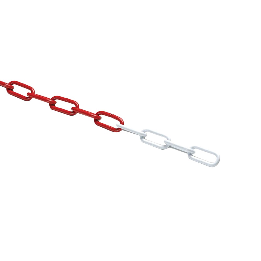 Long link chain red/white painted, 5mm, 30mts material steel, weight capacity 300 kg/mt