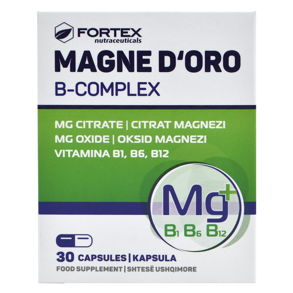 Magnesium citrate has an extremely high degree of absorption by the body even at low concentrations. It is more completely absorbed than other magnesium compounds and it is harmless even in case of overdose, as the body self-regulates its absorption. Magnesium in contributes to a normal metabolism and energy production, restoration of electrolyte balance, normal protein synthesis, reducing the feeling of tiredness, normal muscle function, including muscle cramps after exercise, normal functioning of the nervous system, maintaining normal mental function, normal renal function, normal condition of bones and teeth and the optimal functioning of the immune system. Vitamin B1 (thiamine hydrochloride) contributes to normal heart function. Vitamin B6 (pyridoxine hydrochloride) contributes to the normal synthesis of cysteine, supports the normal metabolism of homocysteine and the normal course of protein and glycogen metabolism. It contributes to the regulation of hormonal activity. Vitamin B12 (cyanocobalamin) contributes to the normal formation of red blood cells, the normal function of the immune system and the reduction of the feeling of fatigue. Vitamin B12 is involved in the process of cell division. How to use: It is recommended to take 1 capsule per day.