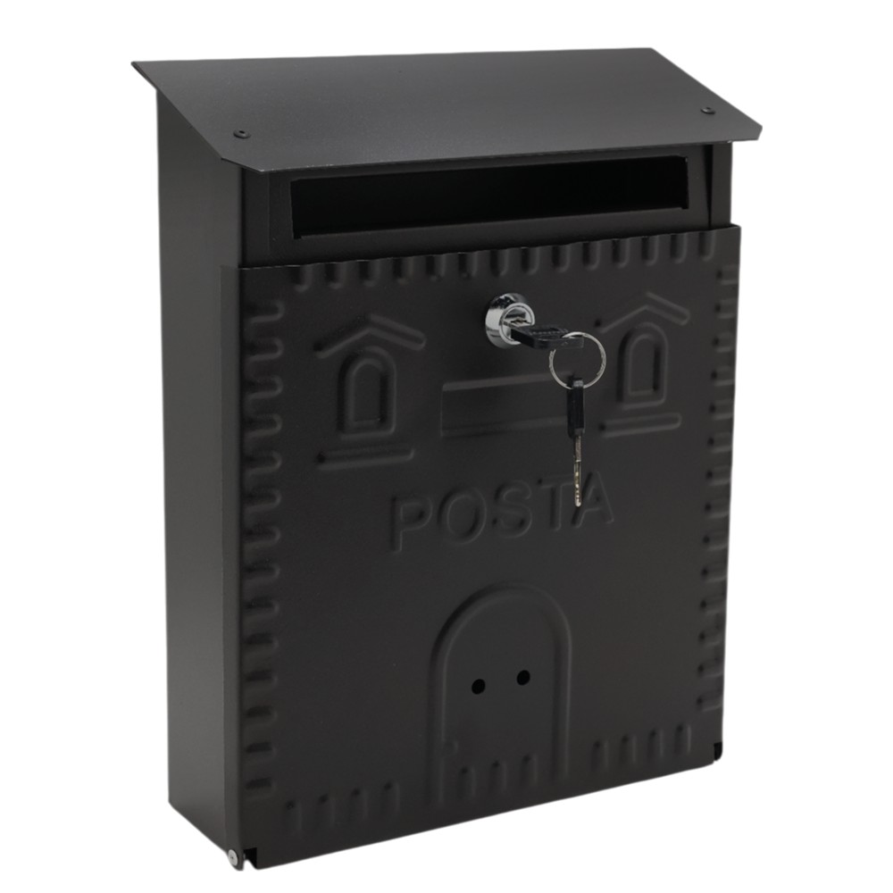 Practical and elegant mailbox as well as safe, key opening mode. It is used in buildings, private houses and businesses. With steel material, color athracite, front opening and dimensions 23 x 9 x 29cm.