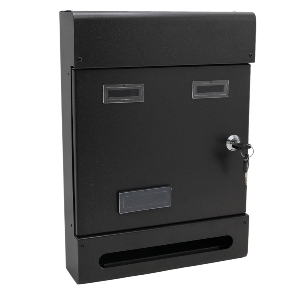 Practical and elegant mailbox as well as safe, key opening mode. It is used in buildings, private houses and businesses. With steel material, color dark grey, front opening and dimensions 25 x 8 x 37cm.