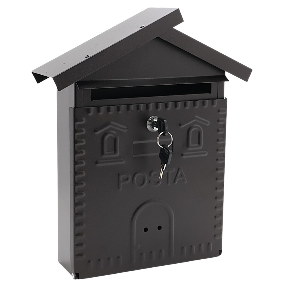 Practical and elegant mailbox as well as safe, key opening mode. It is used in buildings, private houses and businesses. With steel material, color dark brown, front opening and dimensions 28 x 9 x 35cm.