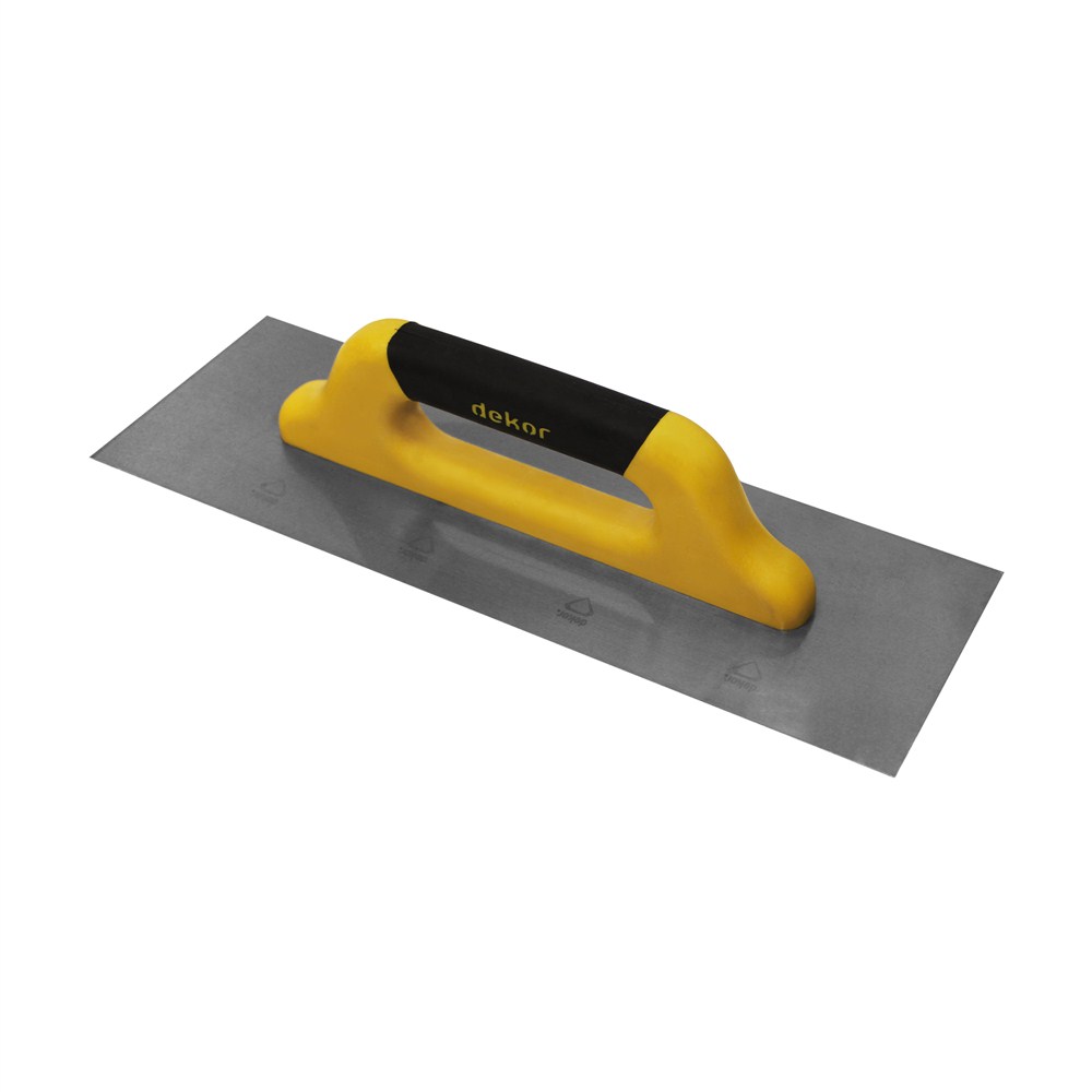 It is manufactured from and spring steel. Closed End Handle and manufactured from plastic. It is used in plastering applications.