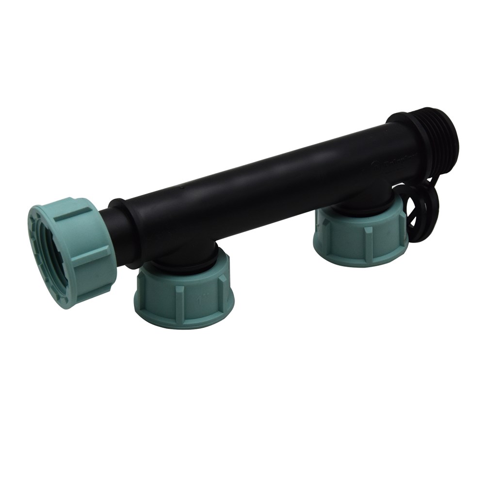 Manifolds with 2 outlets 1 " are UV resistant and feature high-impact construction with watertight connections and are ideal for installing solenoid valve irrigation systems. Manufactured with European standards, resistant to corrosive materials designed to withstand pressure up to 6 Bar.