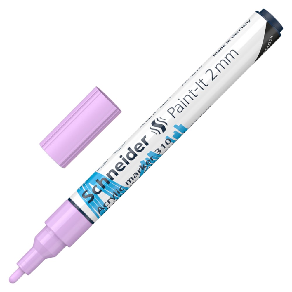 2 mm acrylic marker for creative work. Writing in pastel purple color. The right tool for your every project. High coverage, quick drying and high color brilliance. The optimized paint is suitable for almost any substrate: wood, metal, paper, cardboard, stone, etc. The water-based and fragrance-free ink is perfectly controlled by a valve to suit your needs.