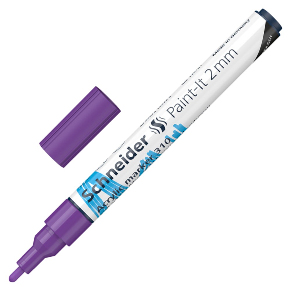 2 mm acrylic marker for creative work. Writing in violet color. The right tool for your every project. High coverage, quick drying and high color brilliance. The optimized paint is suitable for almost any substrate: wood, metal, paper, cardboard, stone, etc. The water-based and fragrance-free ink is perfectly controlled by a valve to suit your needs.