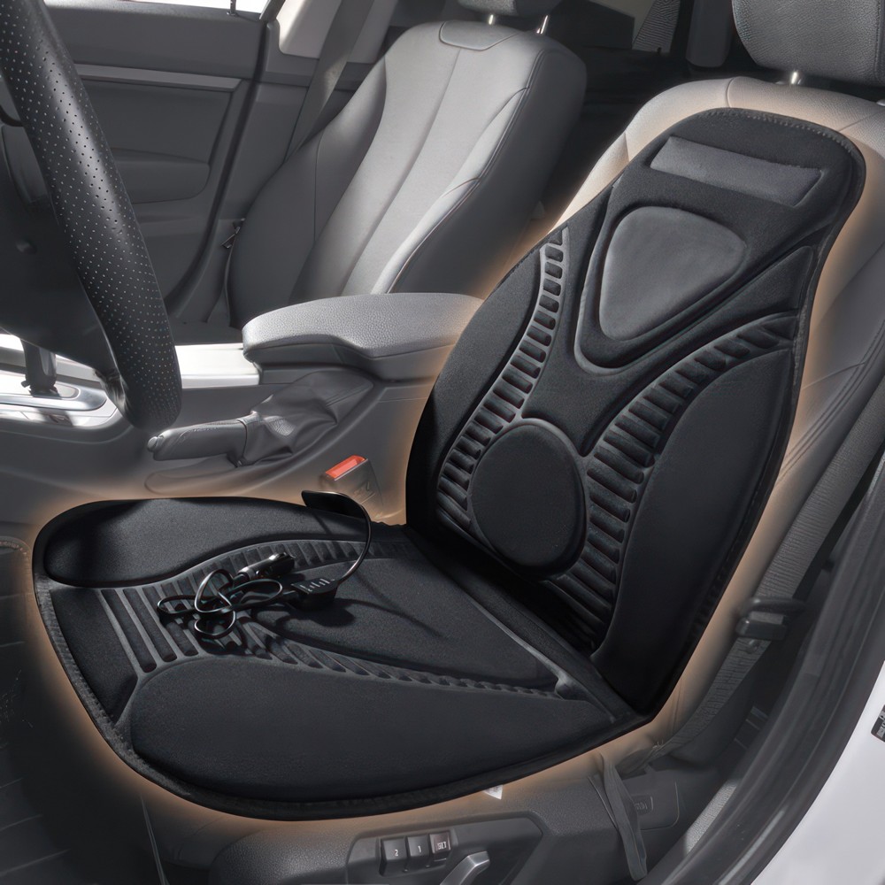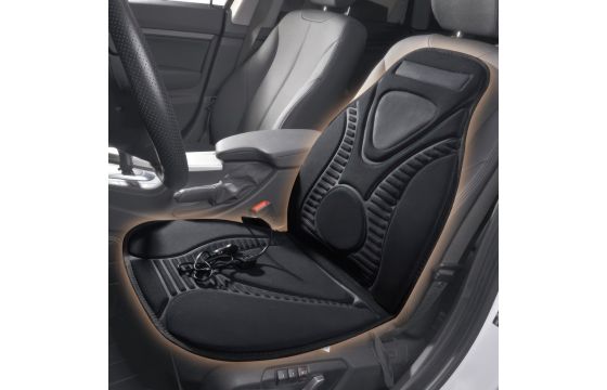 Heated seat cushion. Universal size. Suitable for vehicles with side airbags. Quick and easy assembly with elastic straps. Quantity: 1 piece. 12 V connection via cigarette lighter socket. 2 adjustable heating levels (LOW / HIGH). Includes thermostat. Comfortable cushion. Power: 45 W max. Temperature: 45 ° C max. Color: Black.