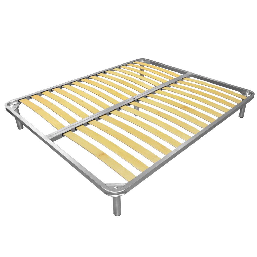 Mattress support (slat), double, metallic frame, metallic legs, wooden slats (28 pieces), natural, 160x200xH27 cm