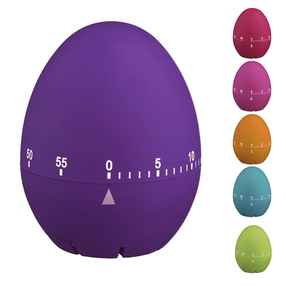 Mechanical egg timer. Very practical and special and consists of ABS rubber material. Measurement time, 1 hour.