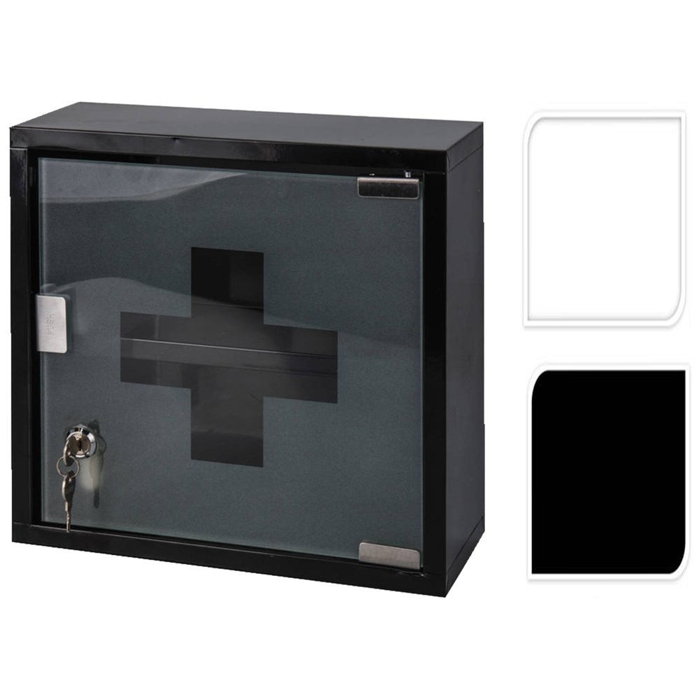 Medicine box, stainless steel and glass, white/black, 30x30xH12 cm