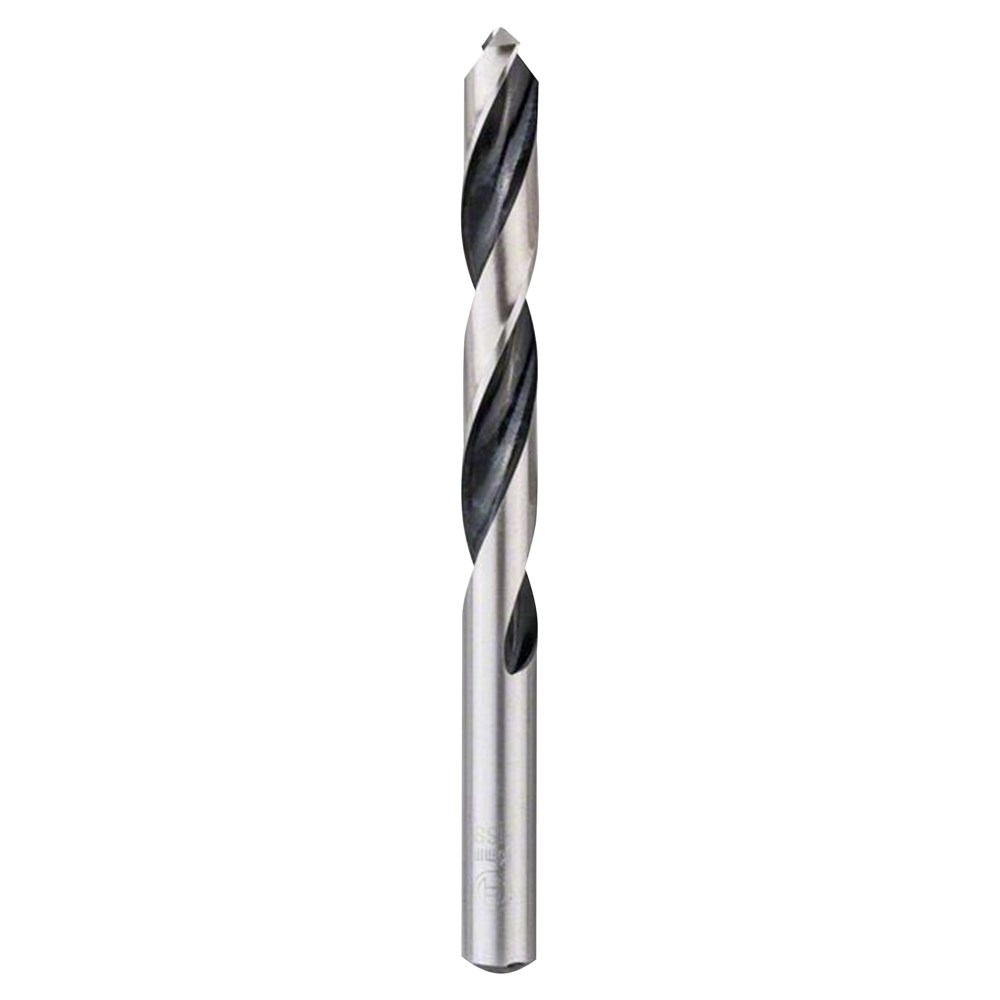 Twist drill bit made of high speed steel manufactured to DIN 338. Type N, drill bit tip 118°, diameter tolerance h 8. Rolled spiral flute with ground point, vapour-plated.Shank equal to drill bit diameter. Two-cutter, cylindrical, two flutes. High elasticity due to low-heat shaping manufacturing process. Low risk of breakage - especially when drilling with diameters smaller than 6mm. Spiral flute with oxide coating for rapid chip removal. Suitable for steel , non-ferrous metals, cast iron, hard plastics.
