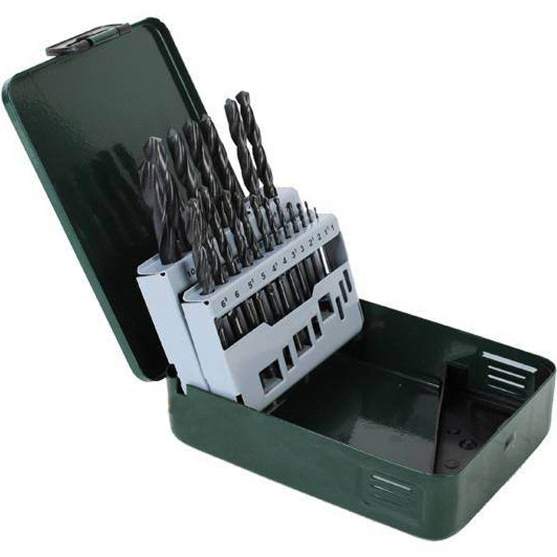 Metal Drill Bit set 19 pc. Metal Drill Bit particulary flexible and resistant to breakage. For use with most metals, both ferrous and non-ferrous. Longlife and precision jobber drill bits. Shank equal to drill bit diameter and rolled spiral flute with ground point, vapour-plated. Two-cutter, cylindrical, with two flutes. 1/1.5/2/2.5/3/3.5/4/4.5/5/5.5/ 6/6.5/7/7.5/8/8.5/9/9.5/10 mm.