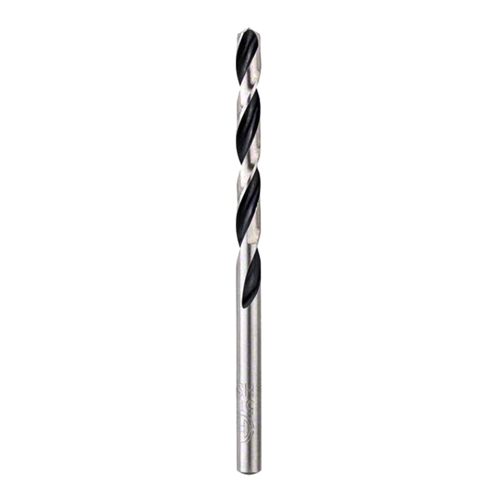Twist drill bit made of high speed steel manufactured to DIN 338. Type N, drill bit tip 118°, diameter tolerance h 8. Rolled spiral flute with ground point, vapour-plated.Shank equal to drill bit diameter. Two-cutter, cylindrical, two flutes. High elasticity due to low-heat shaping manufacturing process. Low risk of breakage - especially when drilling with diameters smaller than 6mm. Spiral flute with oxide coating for rapid chip removal. Suitable for steel , non-ferrous metals, cast iron, hard plastics.
