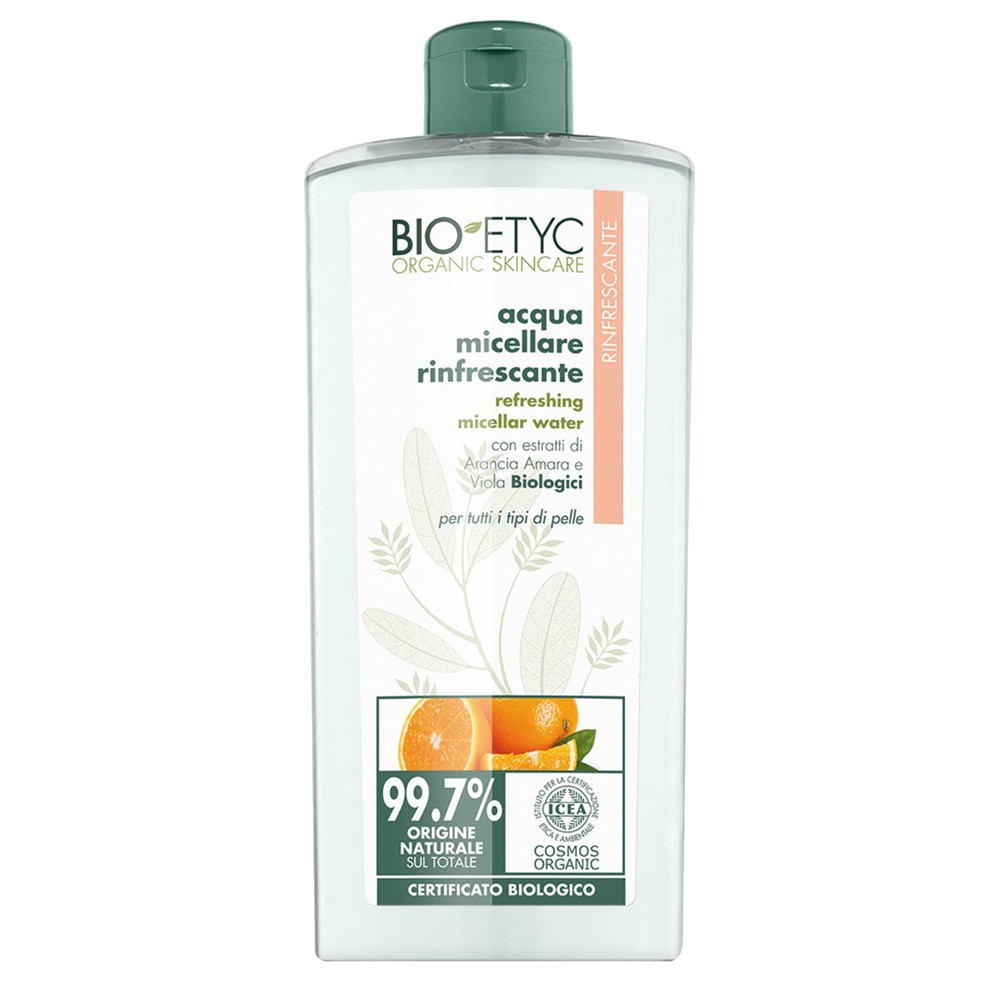 Bioetyc Organic Refreshing Micellar Water 400ml. Suitable for all skin types. Cleanses and refreshes the face. Gently removes makeup and impurities. With extracts of Organic Bitter Orange for a refreshing and toning effect and Organic Violet with known soothing properties.