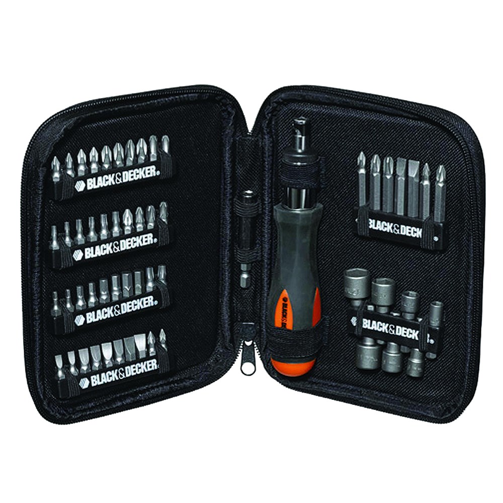 This screwdriver set contains the most popular range of screw driving drill bits accessories including 1 inch bits, 2 inch bits, nut drivers and a bonus ratcheting screwdriver. This set can be used with power tools or used by hand with the ratcheting driver for tight spots or fine tuning. The screwdriver set with drill bits is all organized in a compact container that can fit anywhere... in the tool box, car or kitchen drawer. Set contains: Types of 25mm bits: Phillips (Ph), Pozidriv (PZ), Torx (T), a longitudinal slot (LS), hexagonal groove (IS).Types of 49mm bits: Phillips (Ph), Pozidriv (PZ), a longitudinal slot (LS). Wrenches. Key sizes M 5-6-7-8-9-10-11-12
