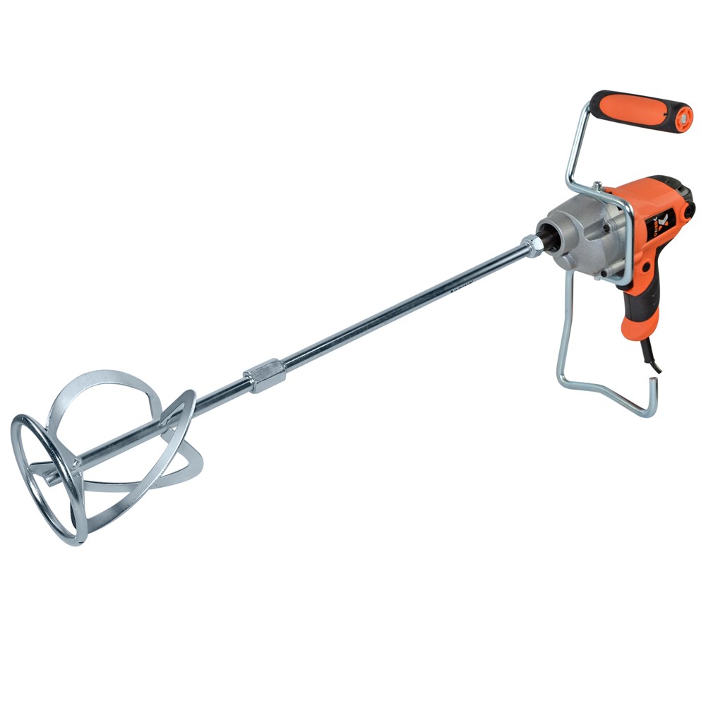 This electric mixer has 850 W power and speed 0-500 rpm.It comes with a universal metal stirrer at 120 mm and a support handle.It weights 36 kg.It has 1-speed and is suitable mixer for solutions, adhesives, paints and coatings.