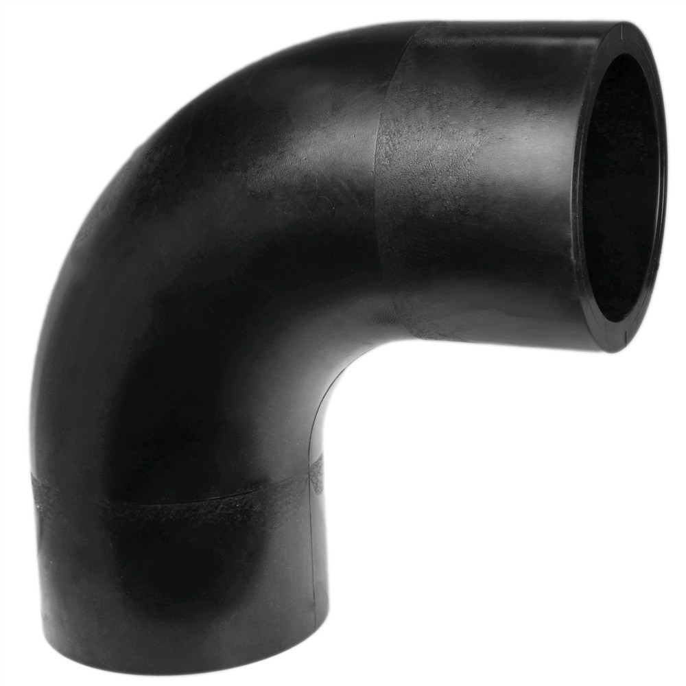 Elbow long spigot HDPE Ø 200mm with angle 90° used widely today in Europe for angular lines installations of water supply infrastructure and lines for the transport of natural gas. The elbow mounted by the method Butt-fusion. Elbow enables network returns 90° angle. For welding HDPE pipe with elbow used welding heat machinery which makes it possible merger of elbow pages and pipe and through pressure enables their union. Manufactured with European standards, resistant to corrosive materials, high resistance to deformation of land and resistant to pressure up to 16 Bar.
