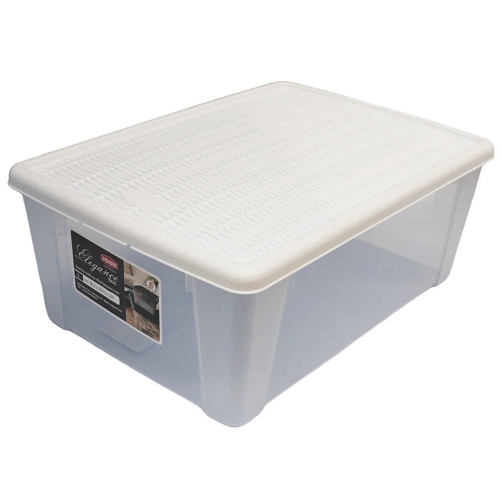 The highly functional rectangular box from the Elegance line, in white color and size 36.5x25.5xH14 cm, fits in the bathroom, in the room or in the kitchen. This box is a great alternative to woven baskets, meaning it has a plastic material that gives the idea of weaving but with a simple and smooth structure. This modern design combined with utility values makes the basket fit perfectly into the arrangement of any interior space.