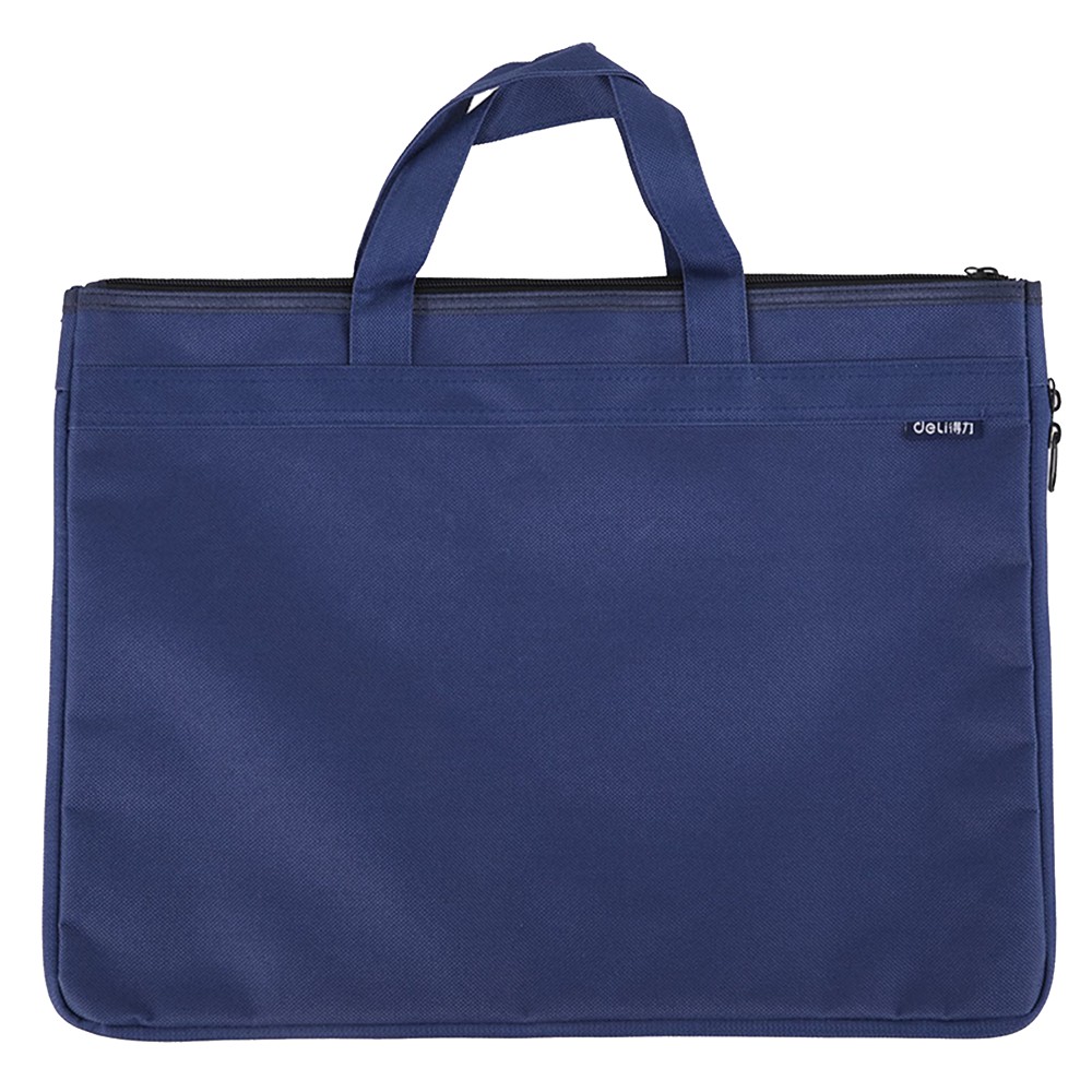 Multifunctional bag, made of textile material. This bag is suitable for various documents in A4 format. It comes in blue.
