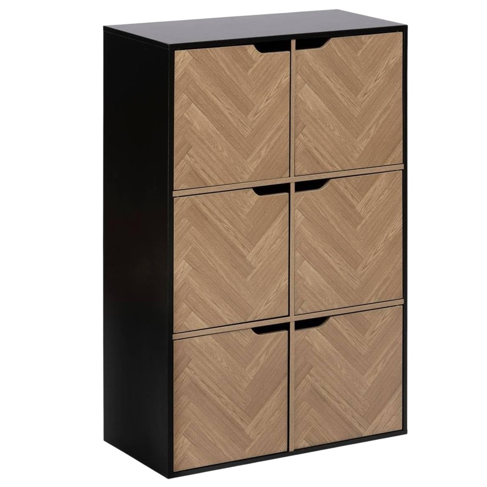 This multifunctional shelf with 6 compartments is made from MDF in a natural color with black details, giving your space a modern and elegant look. Measuring 67.5x32x100.5 cm, it offers ample space for organizing books, decorative items, or other everyday essentials. Its practical and minimalist design makes it suitable for any environment, while the MDF material ensures durability and easy maintenance. This shelf is the perfect choice to add functionality and style to any space.