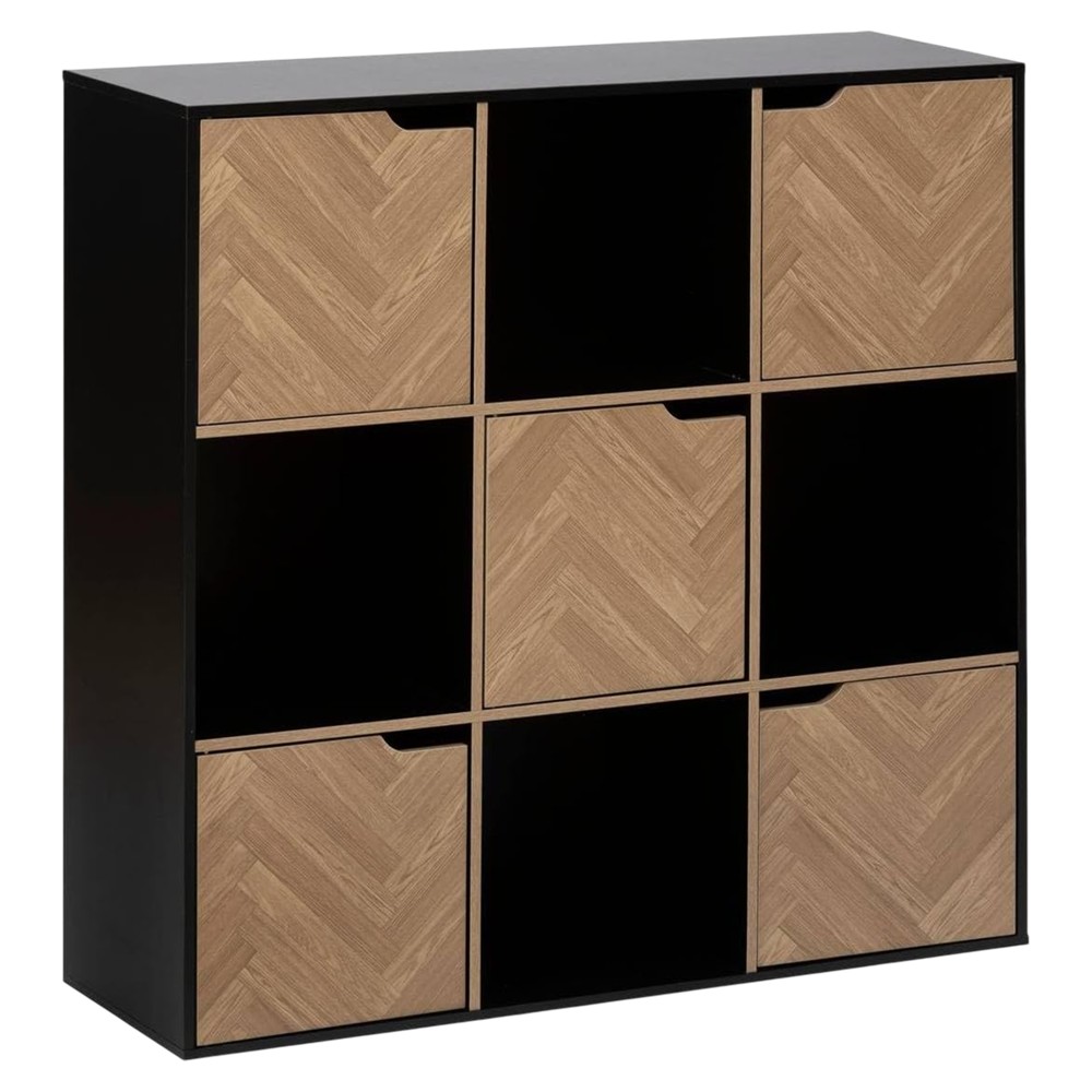 This multifunctional shelf with 9 compartments is made from MDF in a natural color with black details, bringing a modern and functional style to your space. Measuring 100.5x32x100.5 cm, it offers plenty of room for organizing books, decorative items, and everyday essentials. Its minimalist and practical design makes it suitable for any environment, while the MDF material ensures durability and easy maintenance. This shelf is an excellent choice to add organization and style to any room.